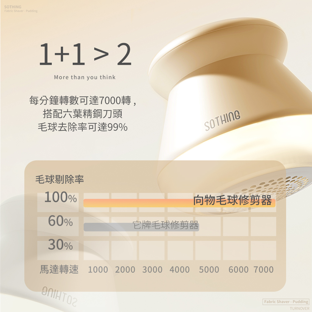 ✅ 每分鐘轉數可達7000轉,搭配六葉精鋼刀頭,毛球去除率可達99%