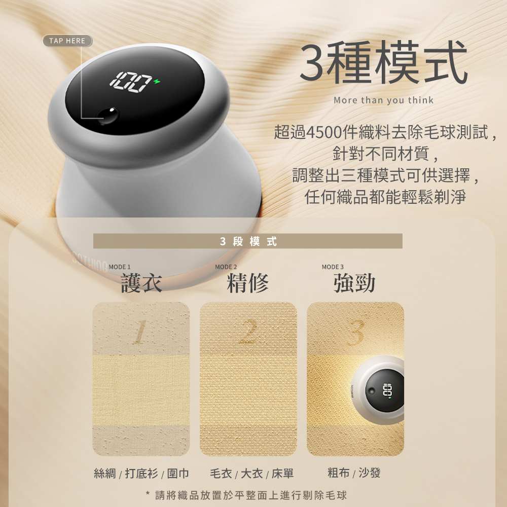 ✅ 護衣 / 精修 / 強勁,三種模式輕鬆除去毛絮
