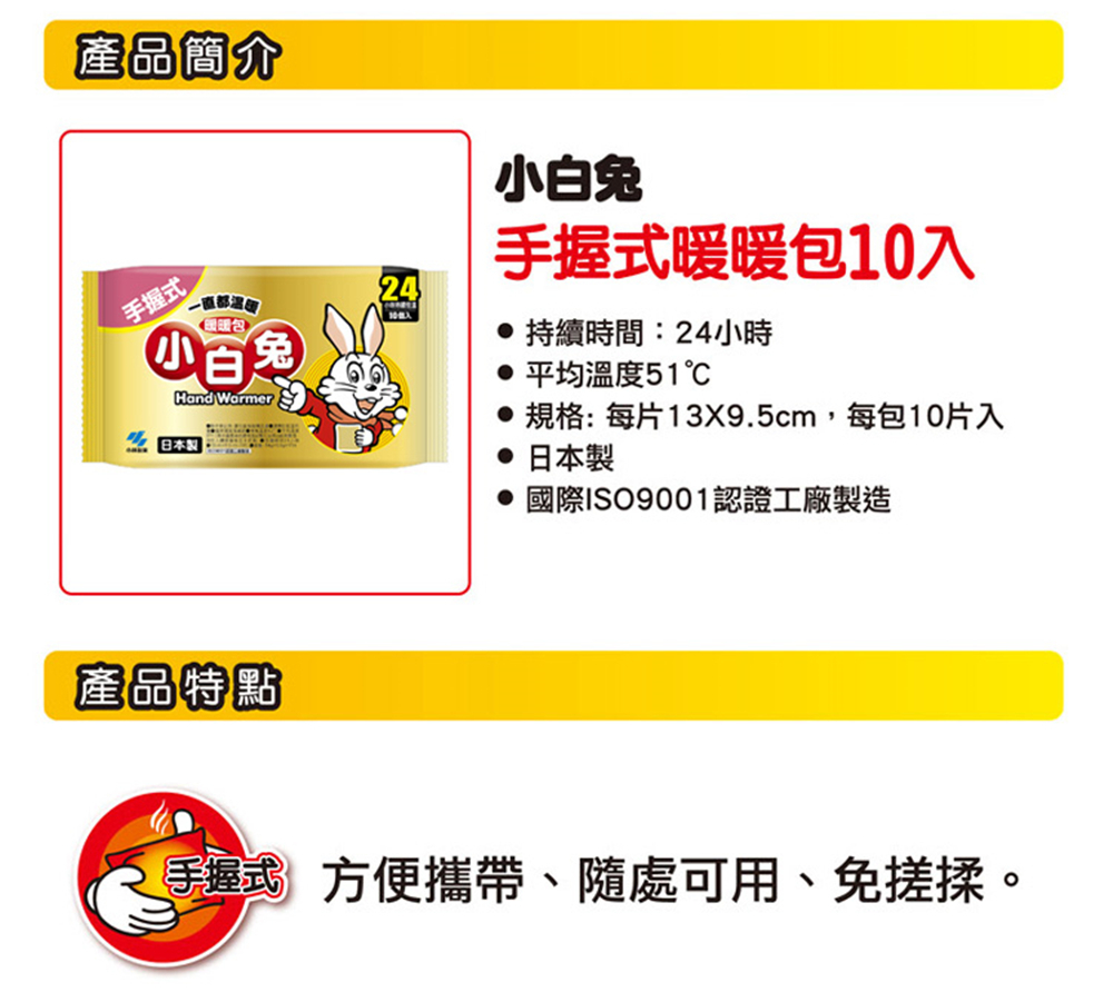 可保暖 24小時持續恆溫的小白兔手握式暖暖包10入一包