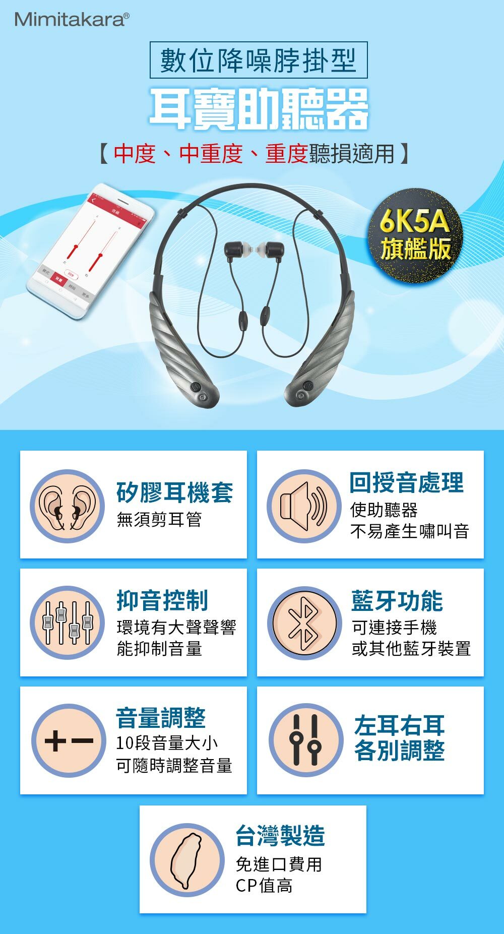 耳寶助聽器 (未滅菌 ) ★Mimitakara 數位降噪脖掛型助聽器【6K5A】 晶鑽黑