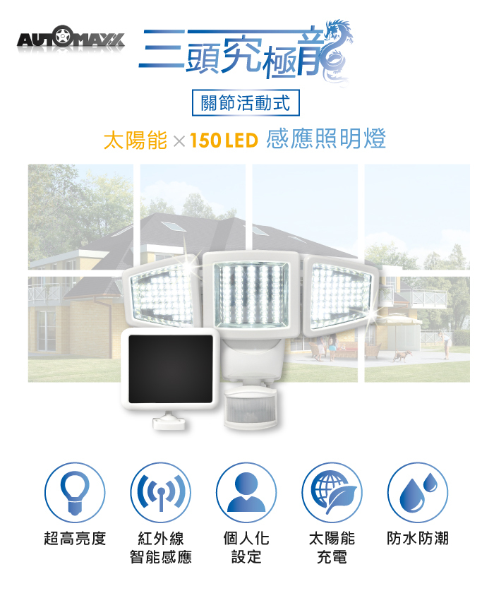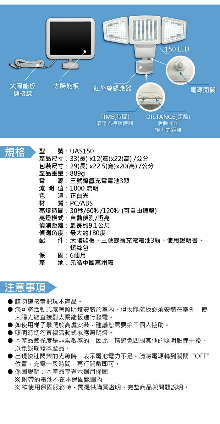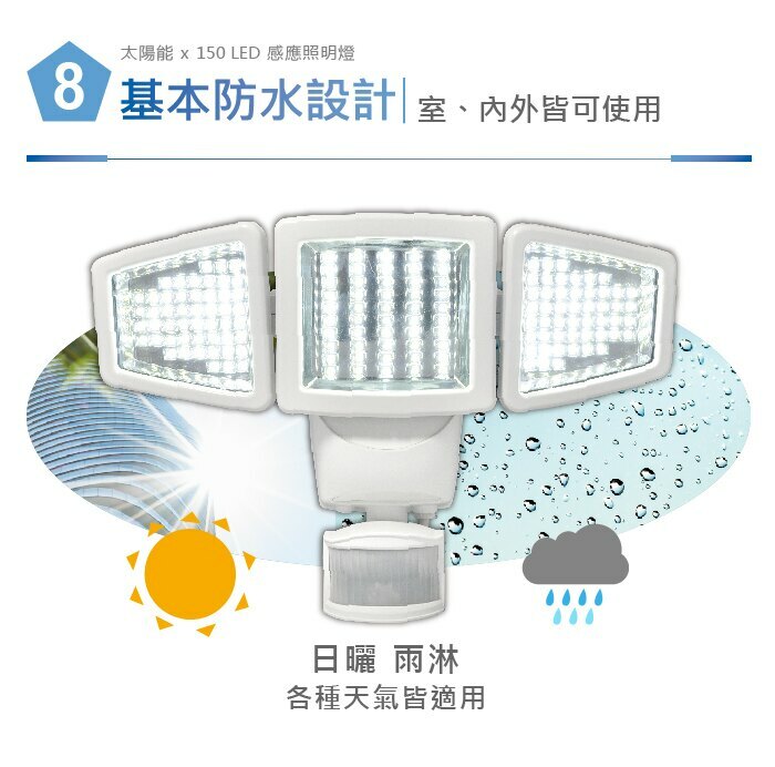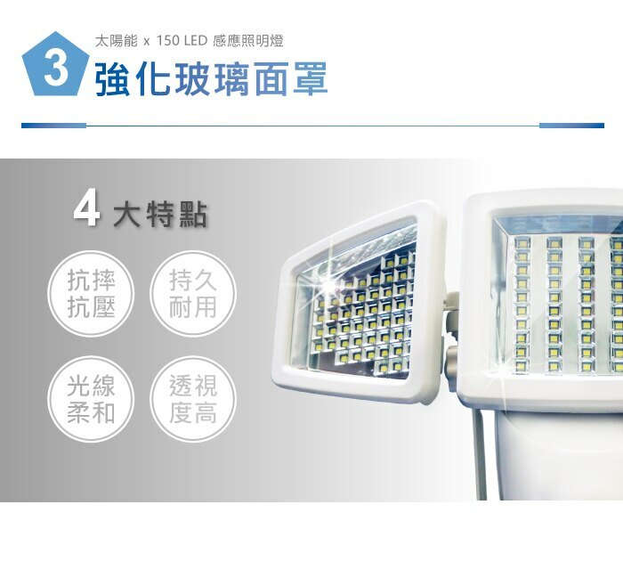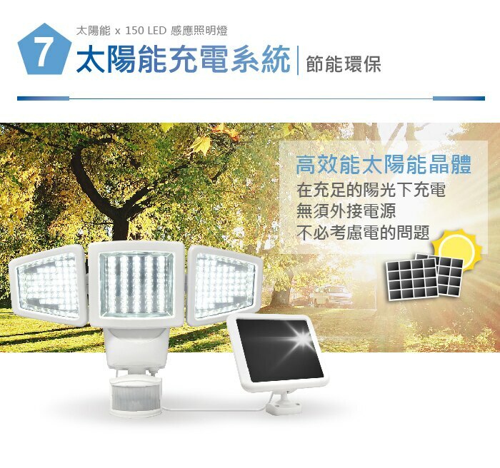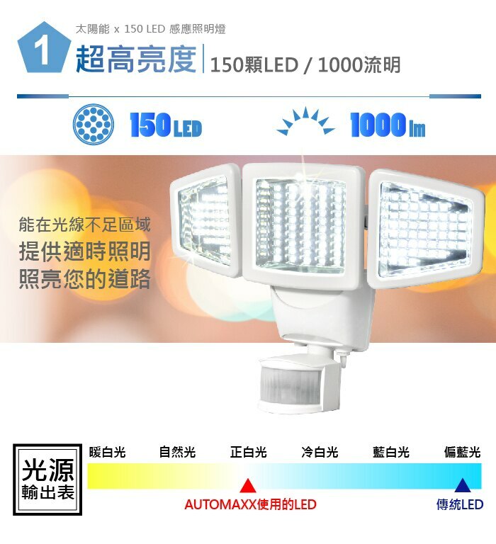 ★使用150LED/1000流明的感應照明燈,能在光線不足的區域提供適時的照明。