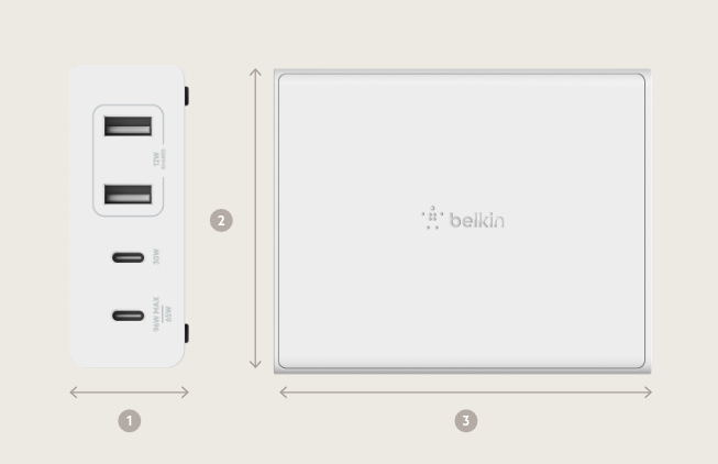整合 GaN 技術,提供安全高效的高功率充電體驗。合共 108W 功率可透過 2 個USB-C 埠和 2 個 USB-A 埠為多達 4 部相容裝置充電。