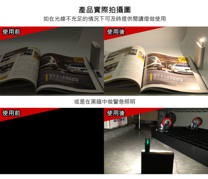 Ⓓ在光線不充足之情況下,可提供緊急照明或閱讀燈使用。