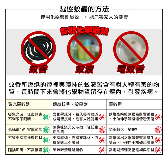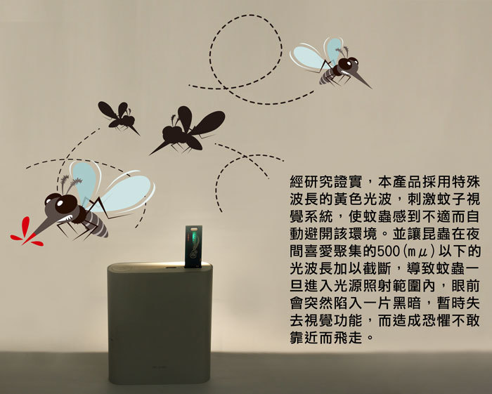 Ⓓ特殊黃光忌避蚊蟲有別於蚊香、電蚊香跟防蚊液類型產品