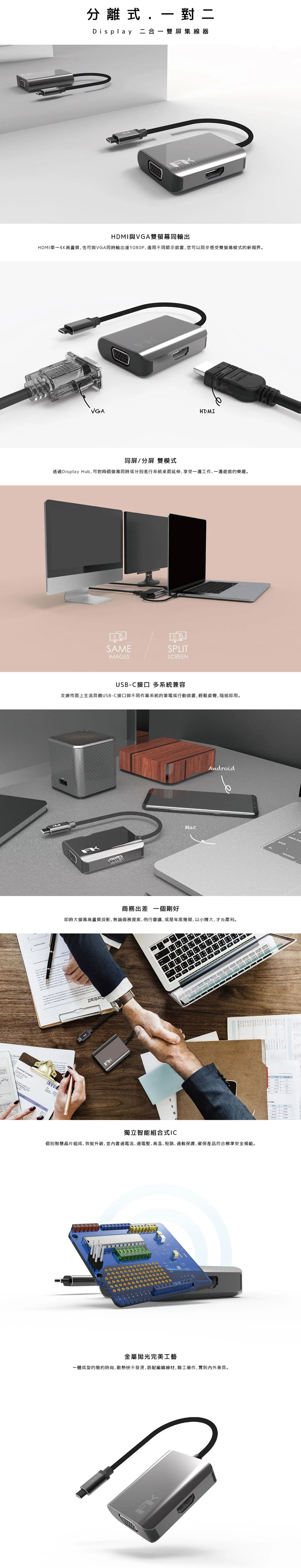 2 in 1 Type-C to HDMI+VGA Dual Hub 影音轉接器