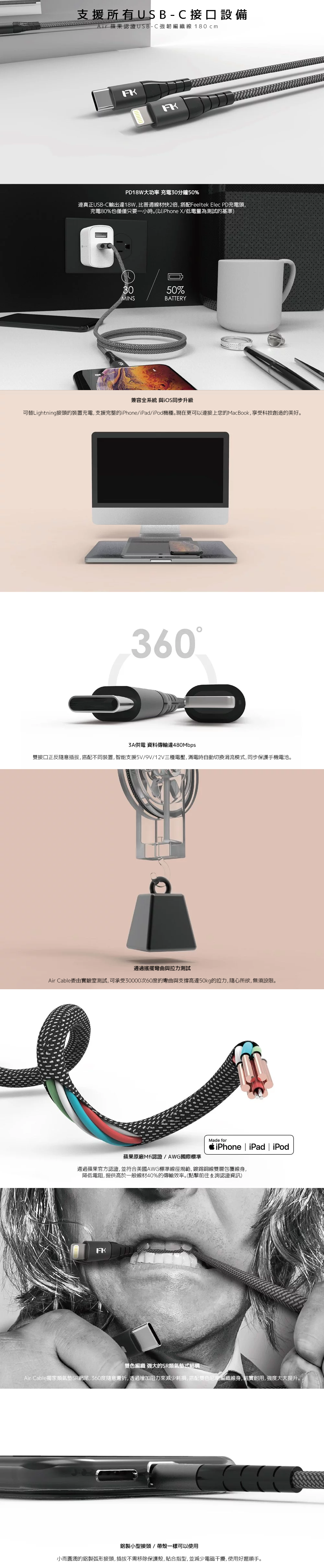 Air Lightning to USB-C Cable 180cm MFI認證 強韌編織線