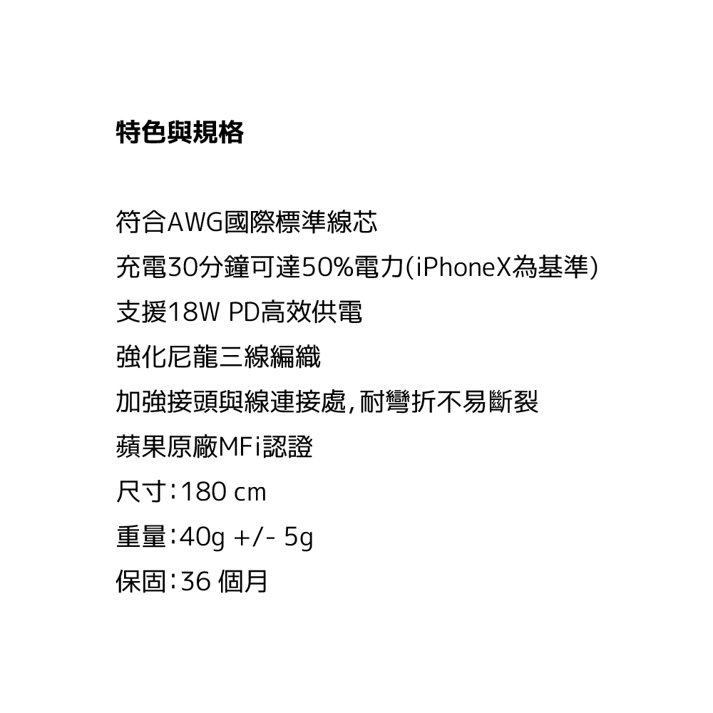 Ⓕ 支持蘋果電源充電器和其他PD充電器快速充電 ,iPhone 能在 30 分鐘內快速充電達 50%雙色強韌編織