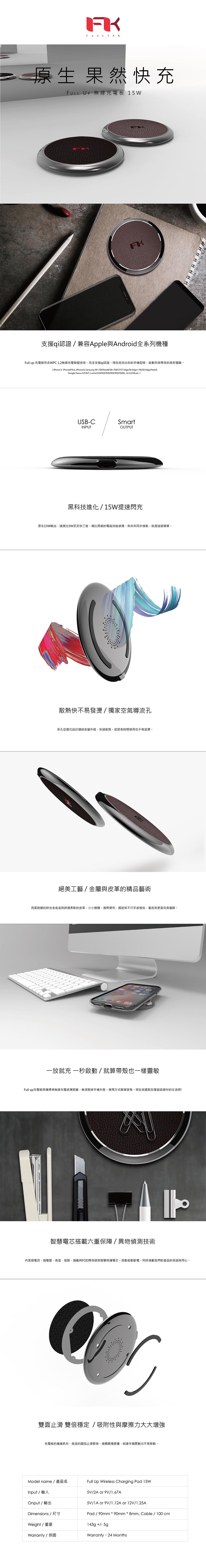 Ⓕ Qi國際標準,適用Qi規格無線充電設備
