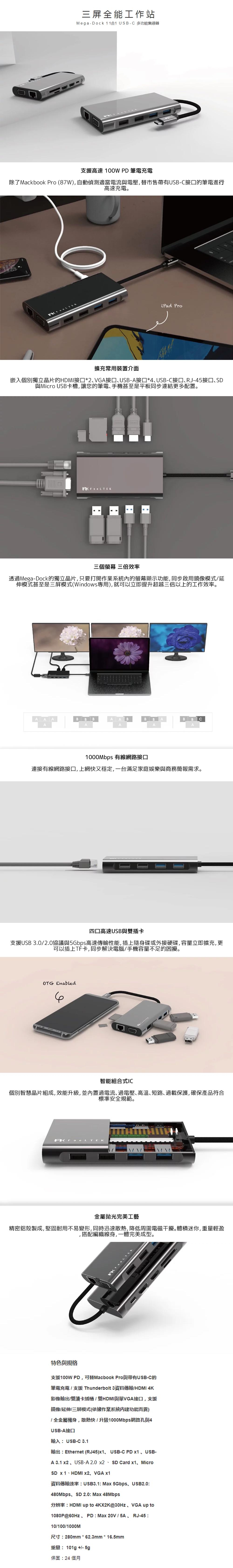 Mega-Dock 11 in 1 Type-C Hub 多功能集線器