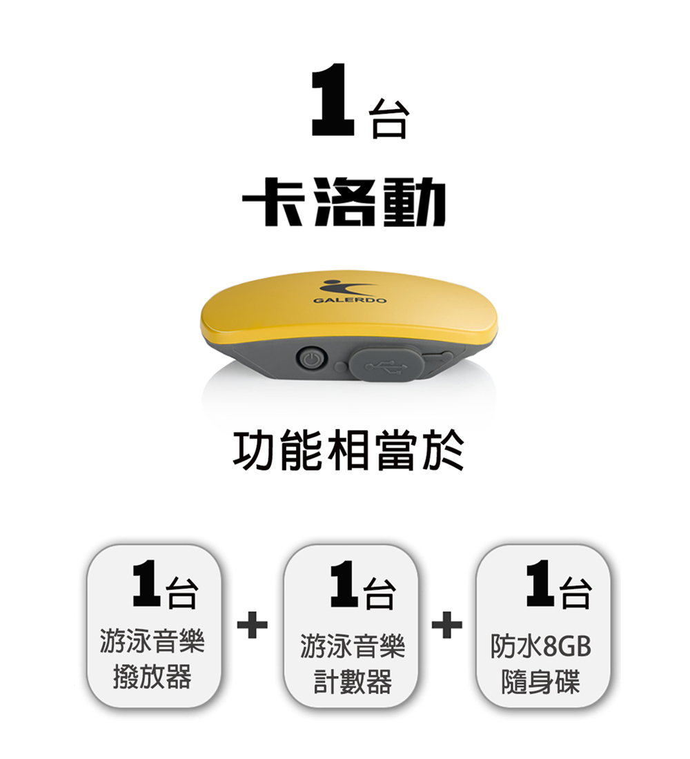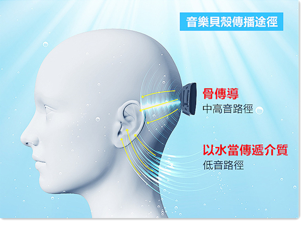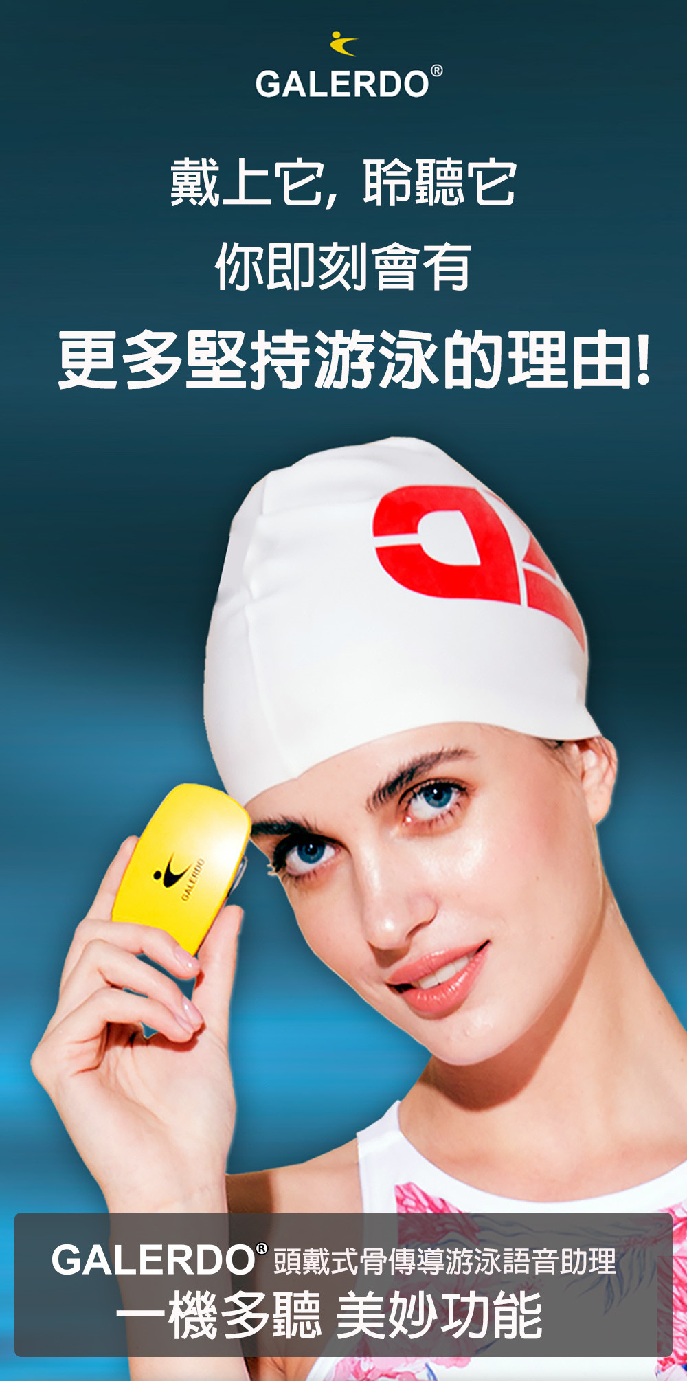 一般耳機必須透過空氣來傳導聲音, 在水中就無法傳遞, 而Galerdo自主研發的聲學專利技術可以透過骨傳導跟水作為聲音傳播介質, 讓你能以最舒適的方式享受水下音樂。