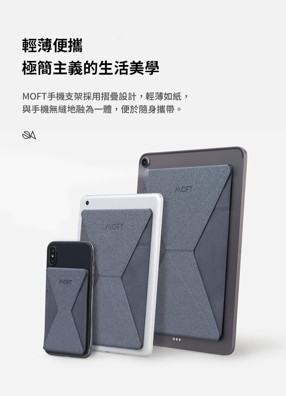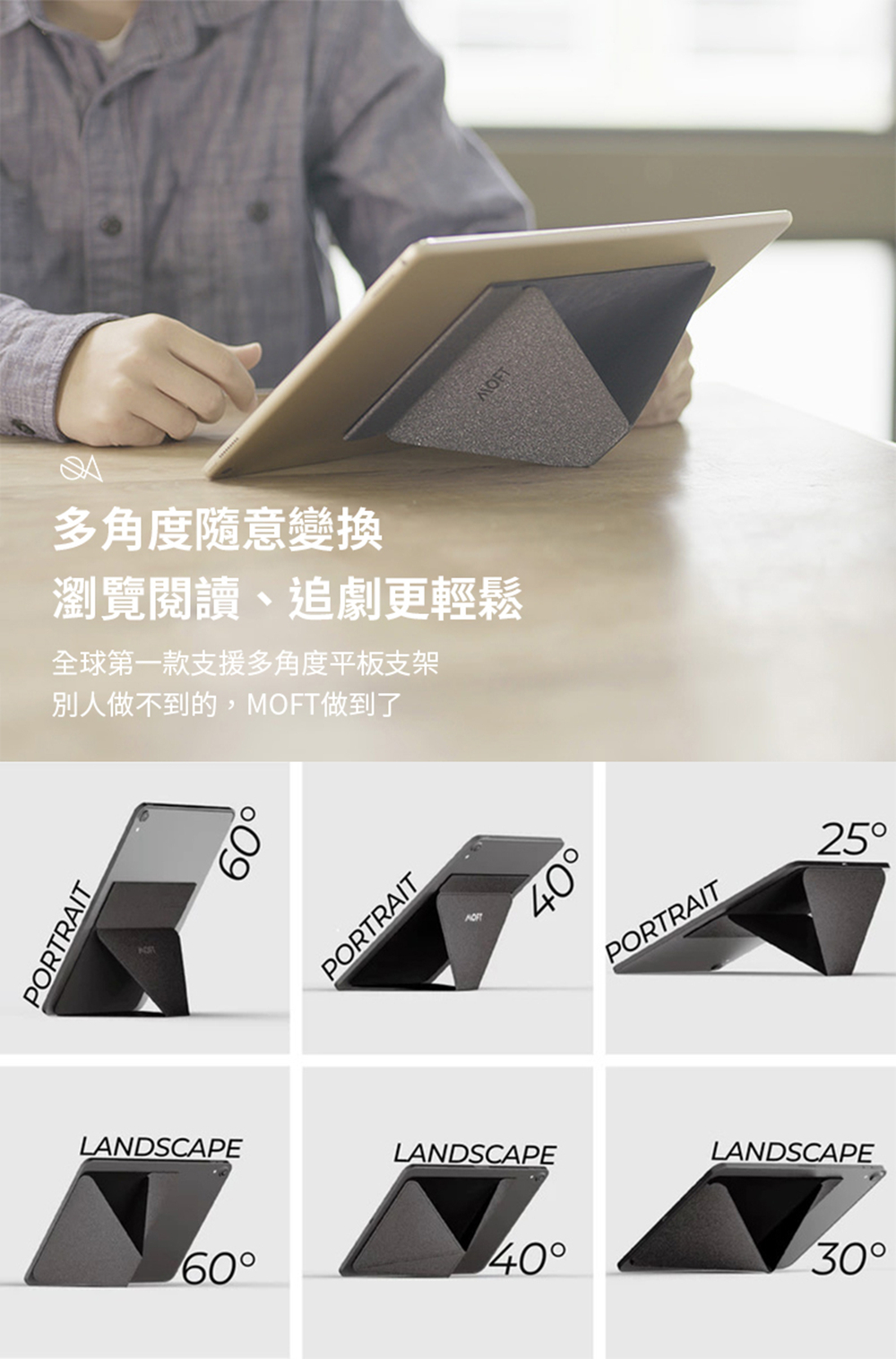 MOFT隱形平板支架,輕薄便攜,享受極簡的生活美學!採摺疊設計,輕薄如紙,與平板無縫地融為一體,更便於隨身攜帶。直立橫豎一秒切換,任何場景都好用!