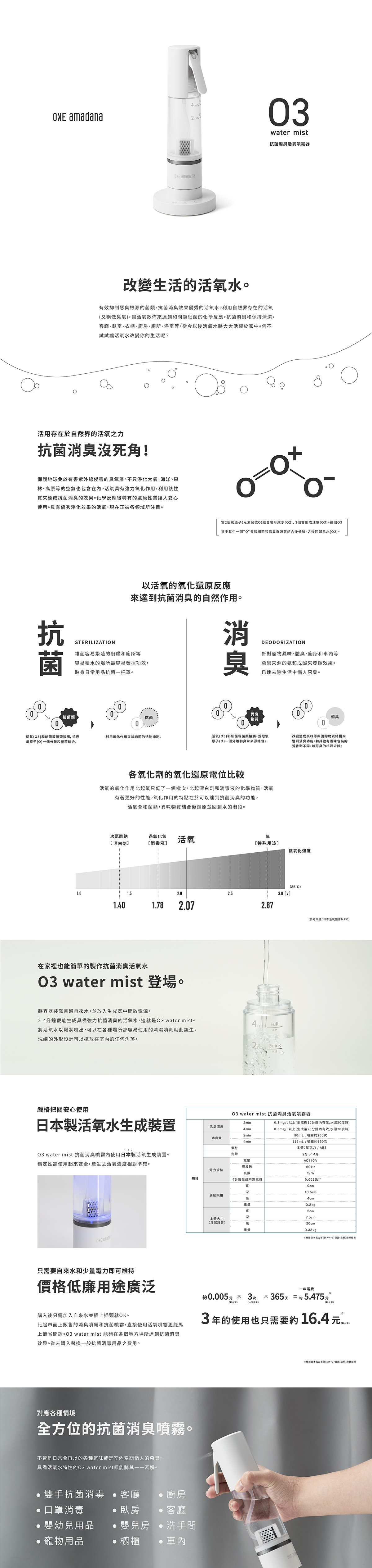 ONE amadana O3 活氧消毒水自造噴霧器
