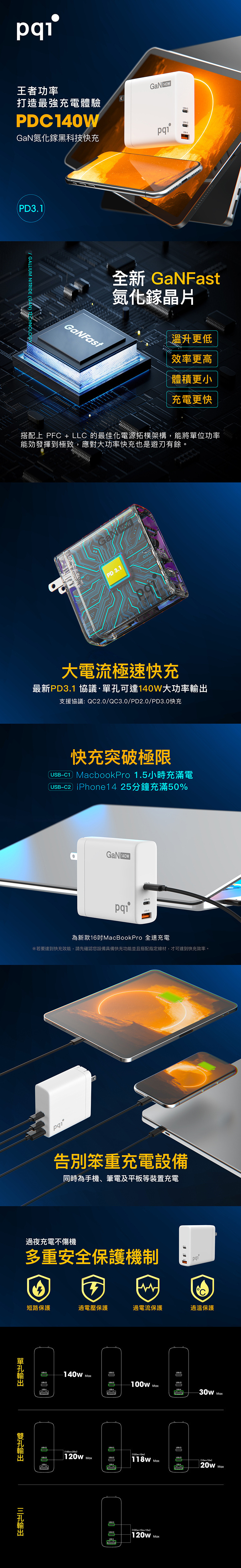 ★ GaNFast氮化鎵技術,支援QC3.0/PD3.0快充