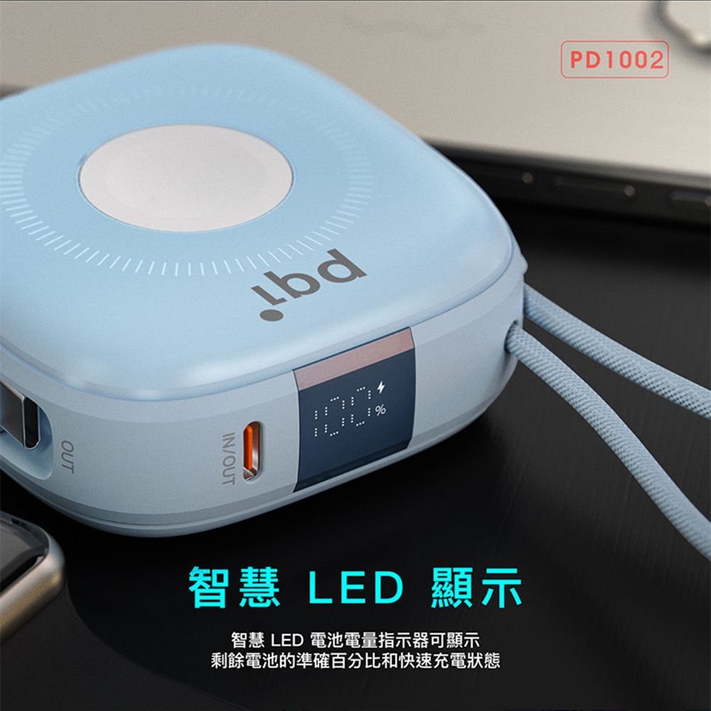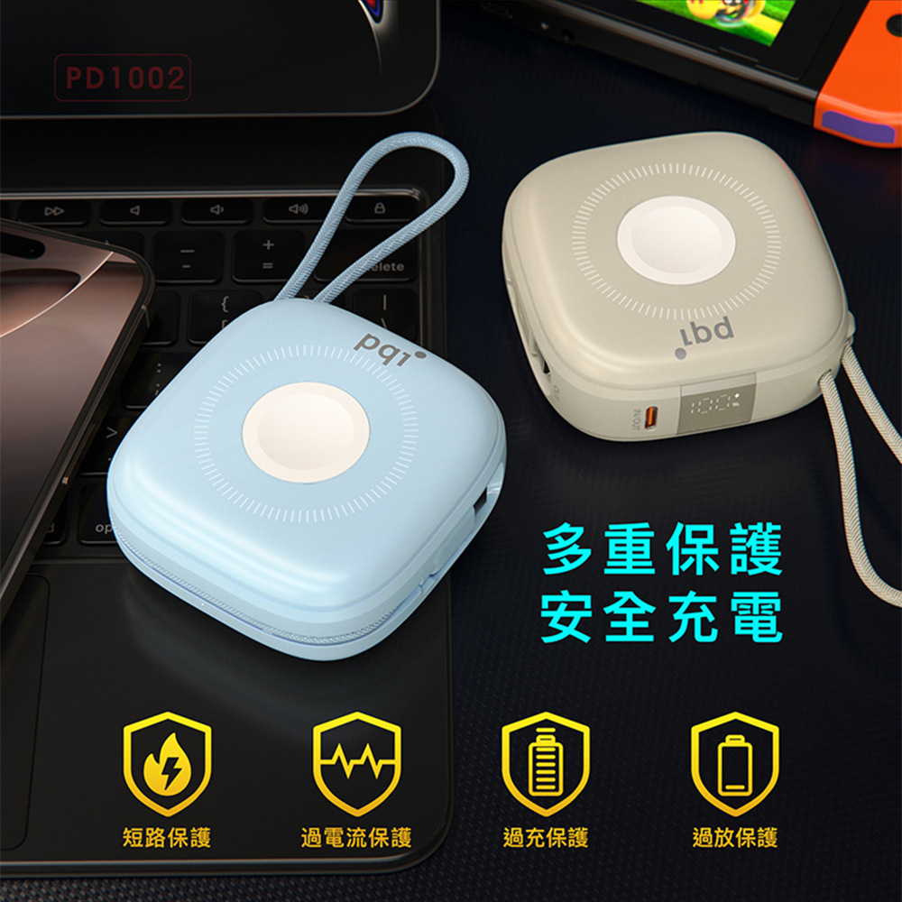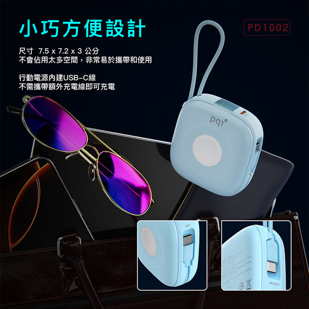 支援多台裝置充電:內建USB-C充電線,可同時為3台設備充電
