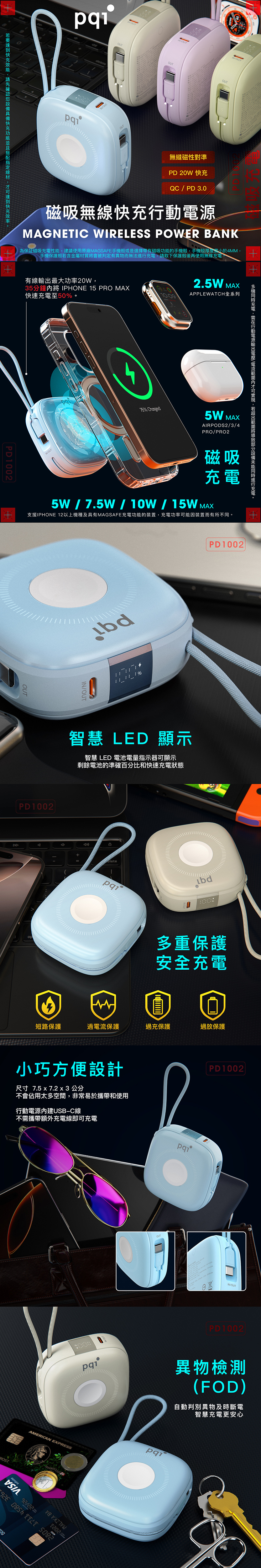 安全充電,全面把關:過流/過充/過放/短路保護,異物檢測 (FOD) ,智慧充電更安心