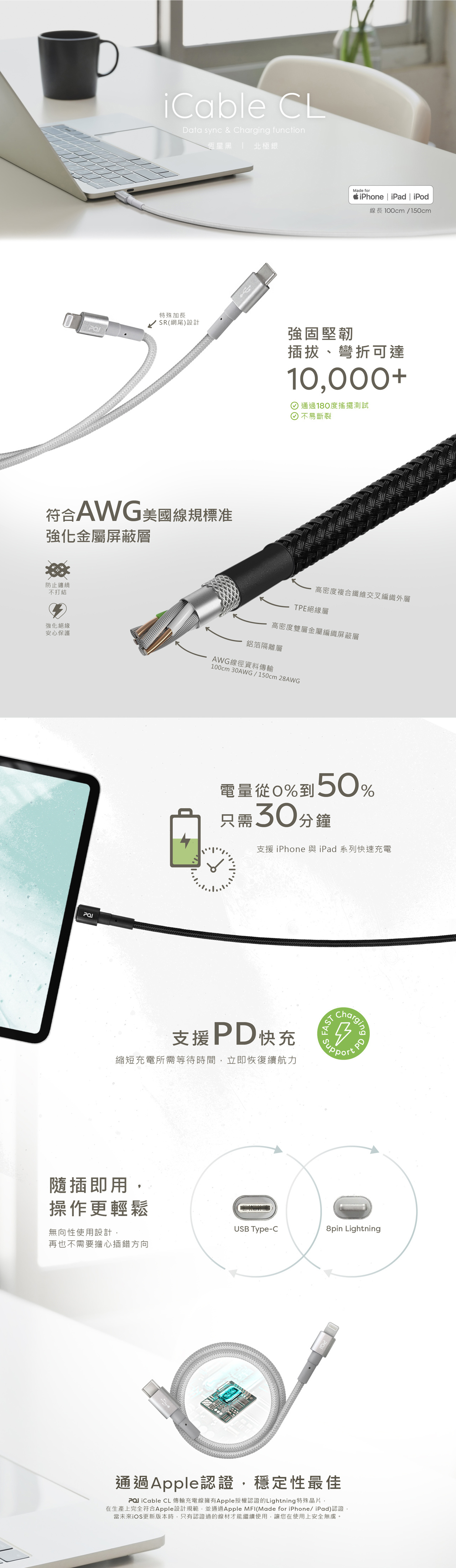 傳輸介面:標準 Apple Lightning & standard USB-C