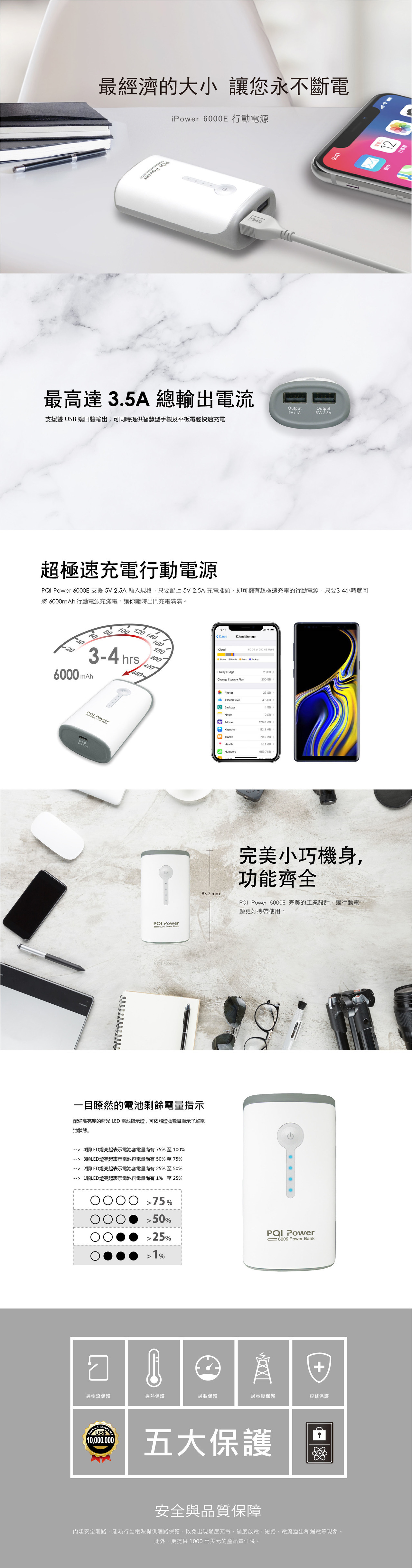 高品質電池與完善的電路保護功能可確保充電安全,為您免去安全顧慮