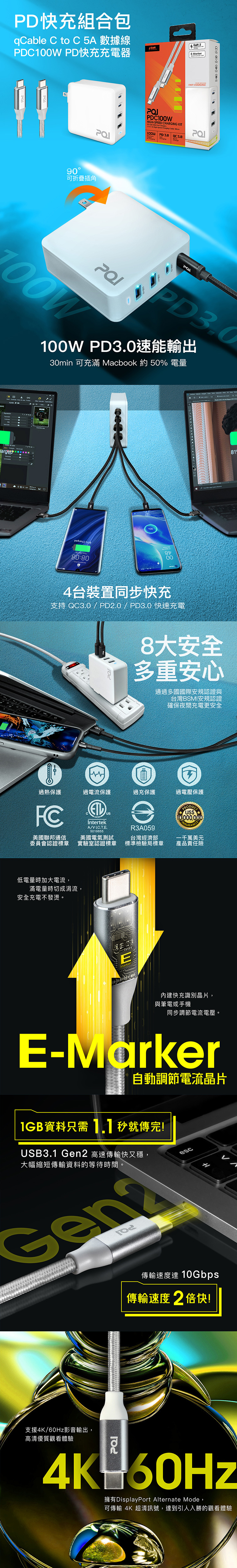 ◆ 快充線支援高瓦數設備充電:內建E-Maker自動調節電流晶片