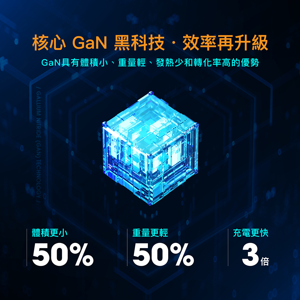 ★核心氮化鎵GaN黑科技:體積小充電快