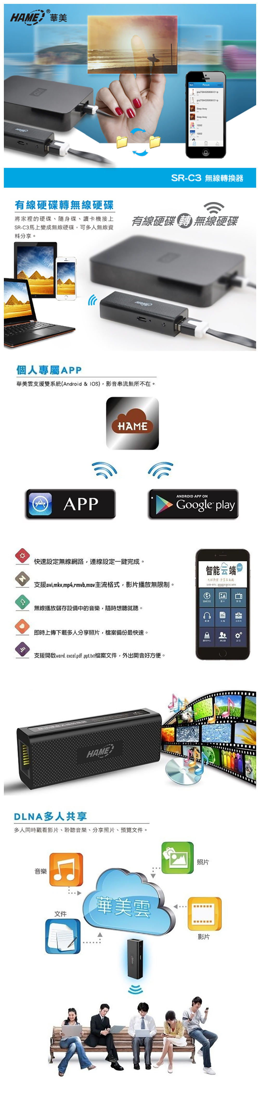 Ⓗ DLNA多人共享。