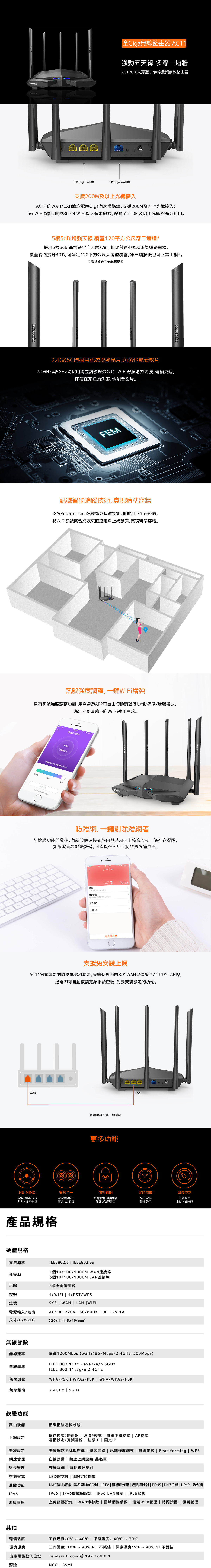 (B2B)AC11 全GIGA 5天線 AC1200M 無線路由器