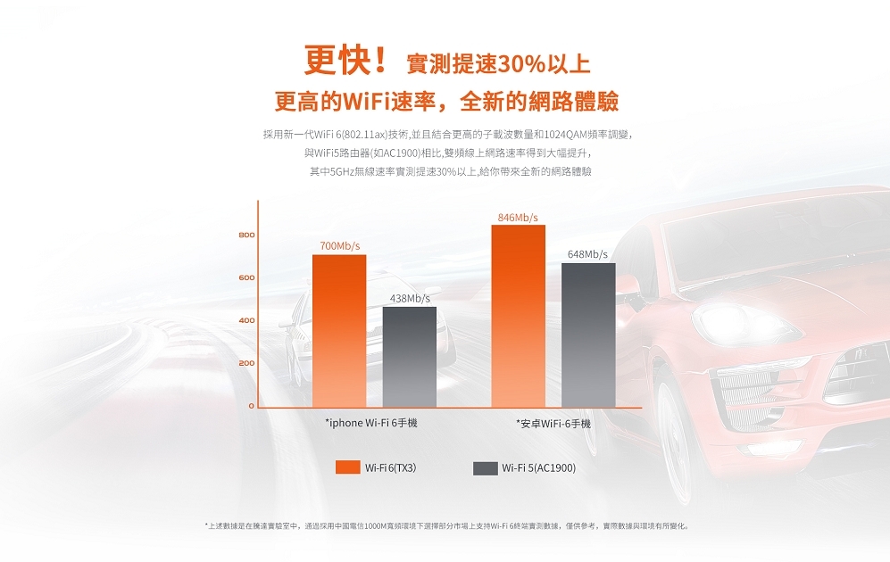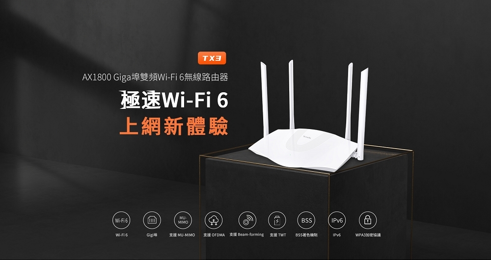 ★WiFi6 AX1800 極速路由器,5GHz 1201Mbps及2.4GHz 574Mbps更穩,更快