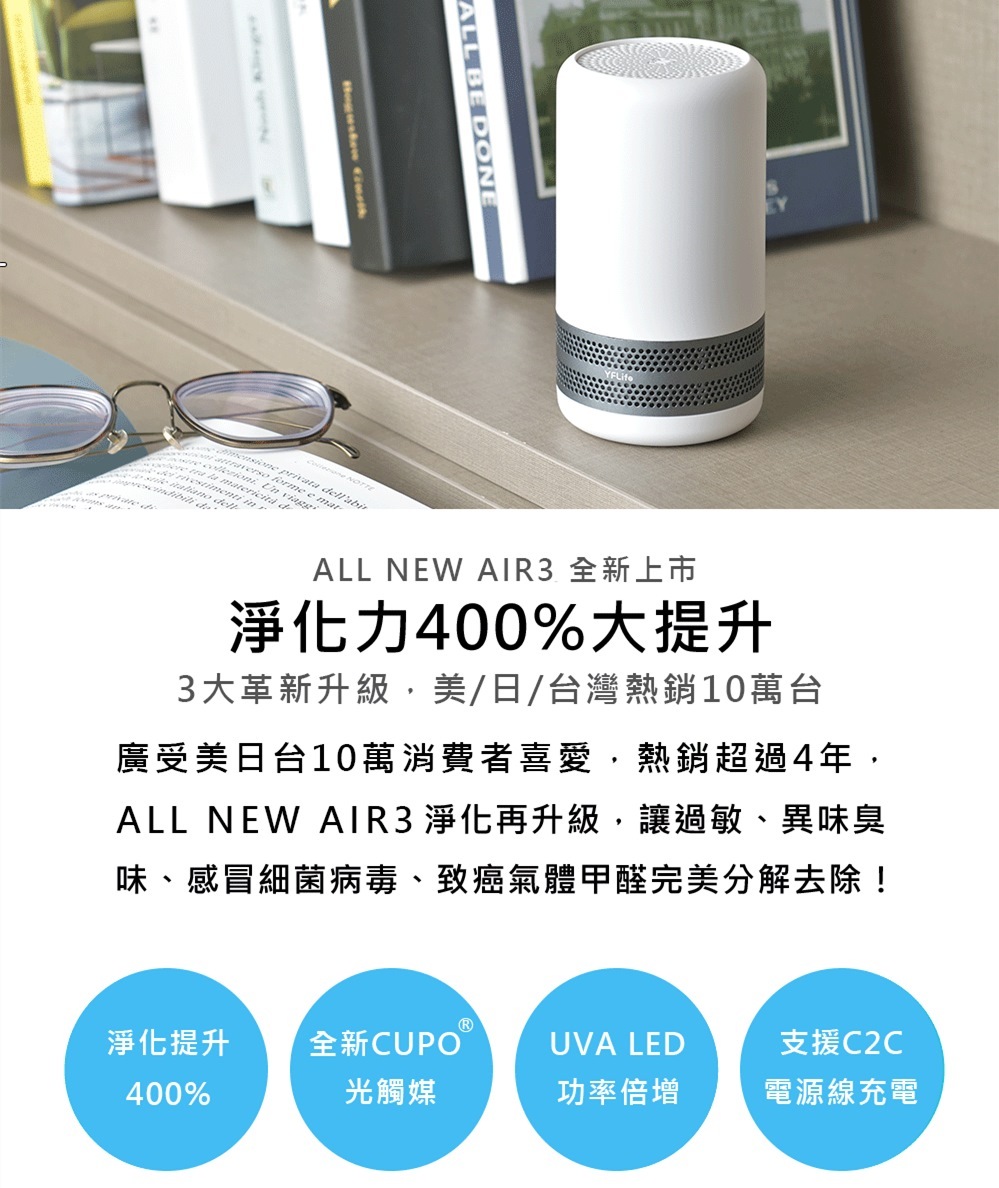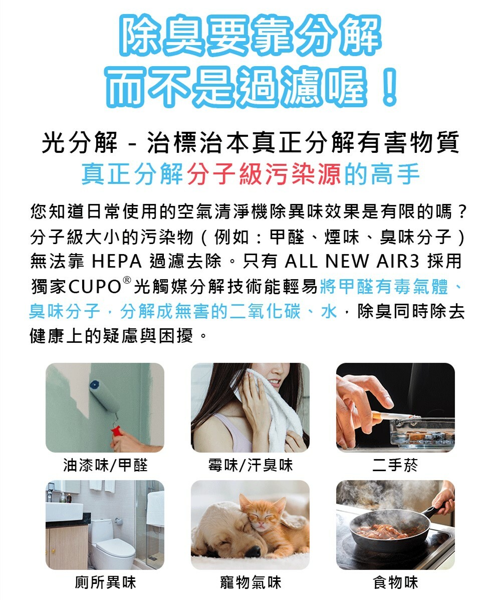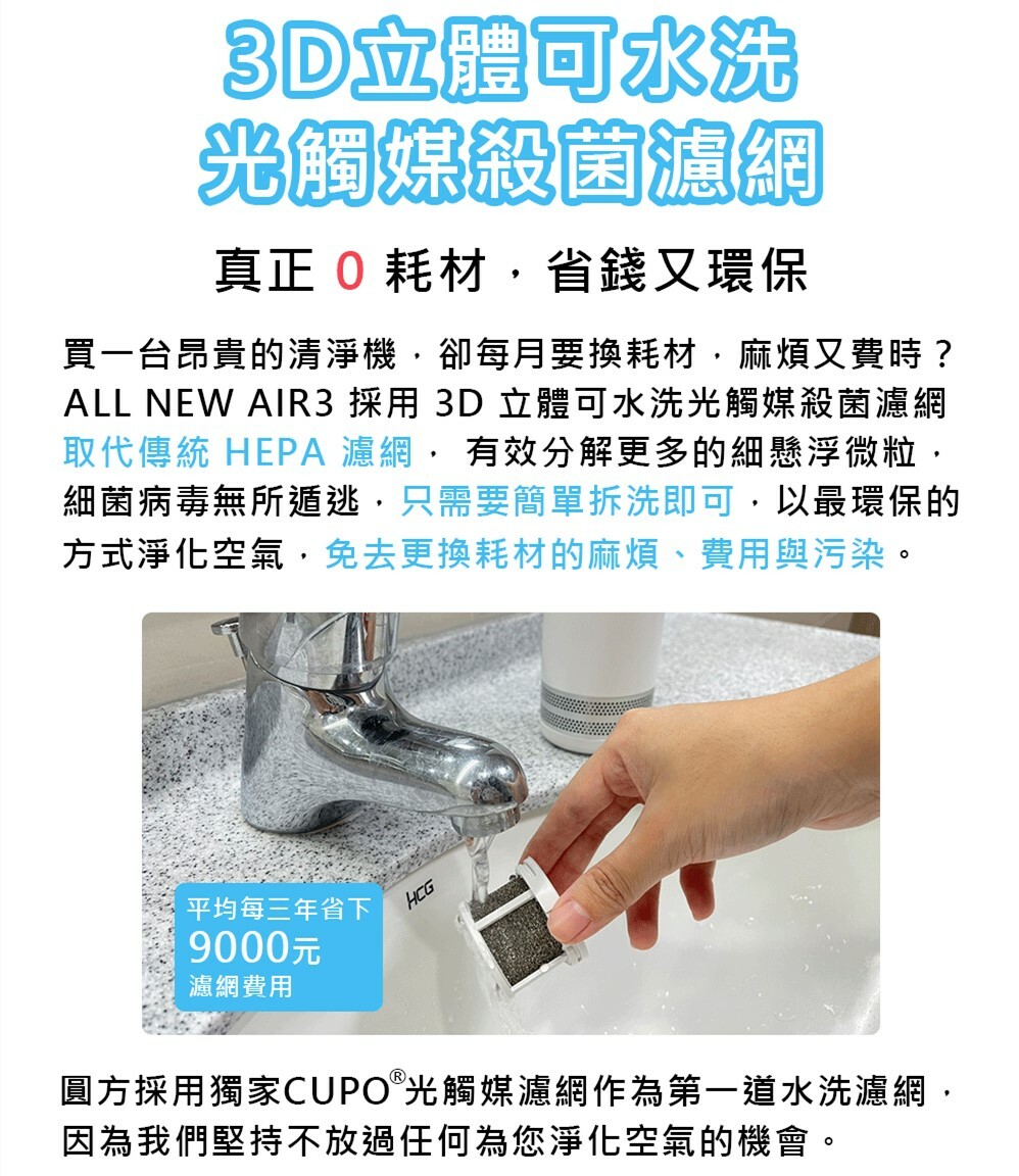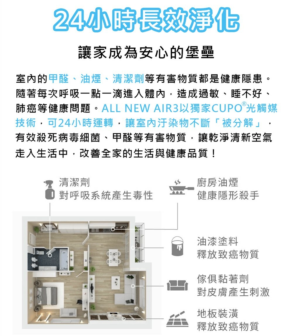 採用獨家CUPO®光觸媒技術去除99.9%冠狀病毒,空氣淨化效能提升400%