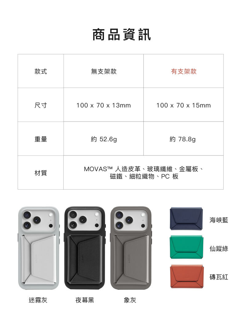 【MOFT】多功能磁吸卡包 MOVAS™ (有支架款)∣一體式、可放8張卡片