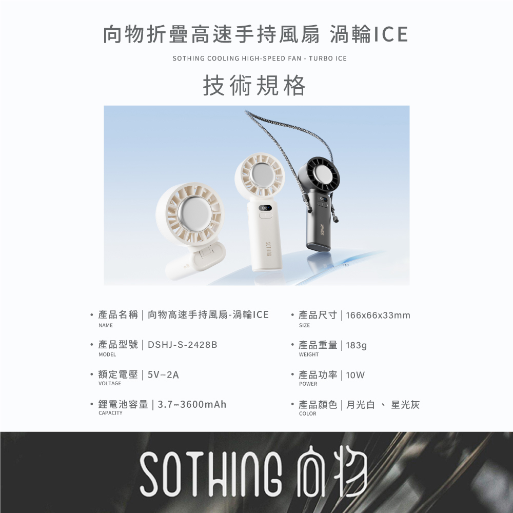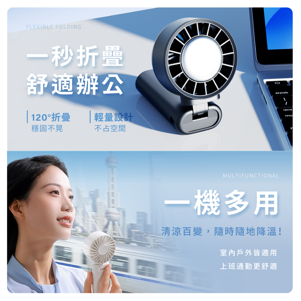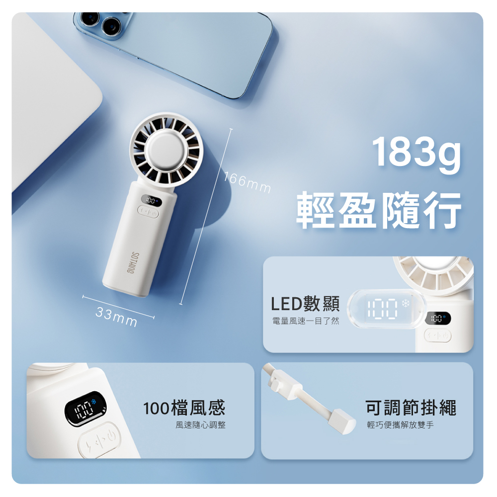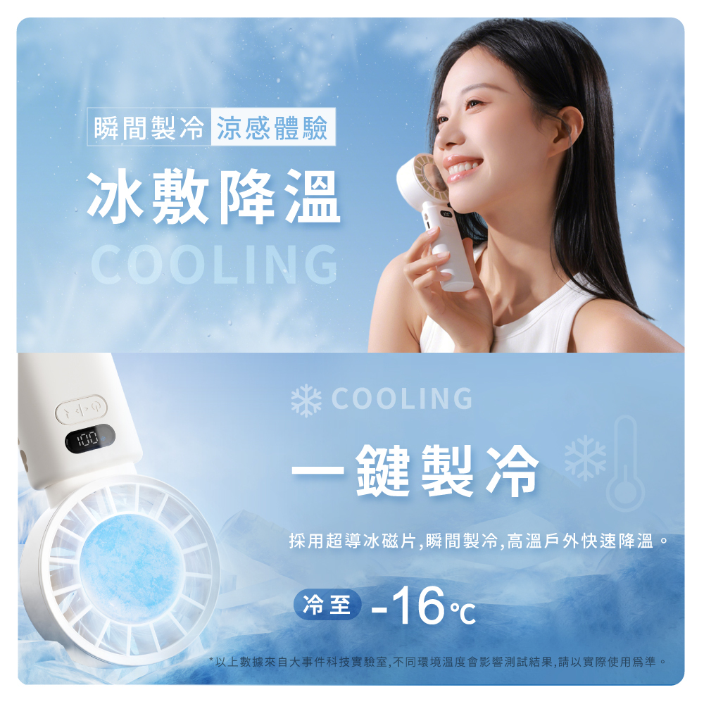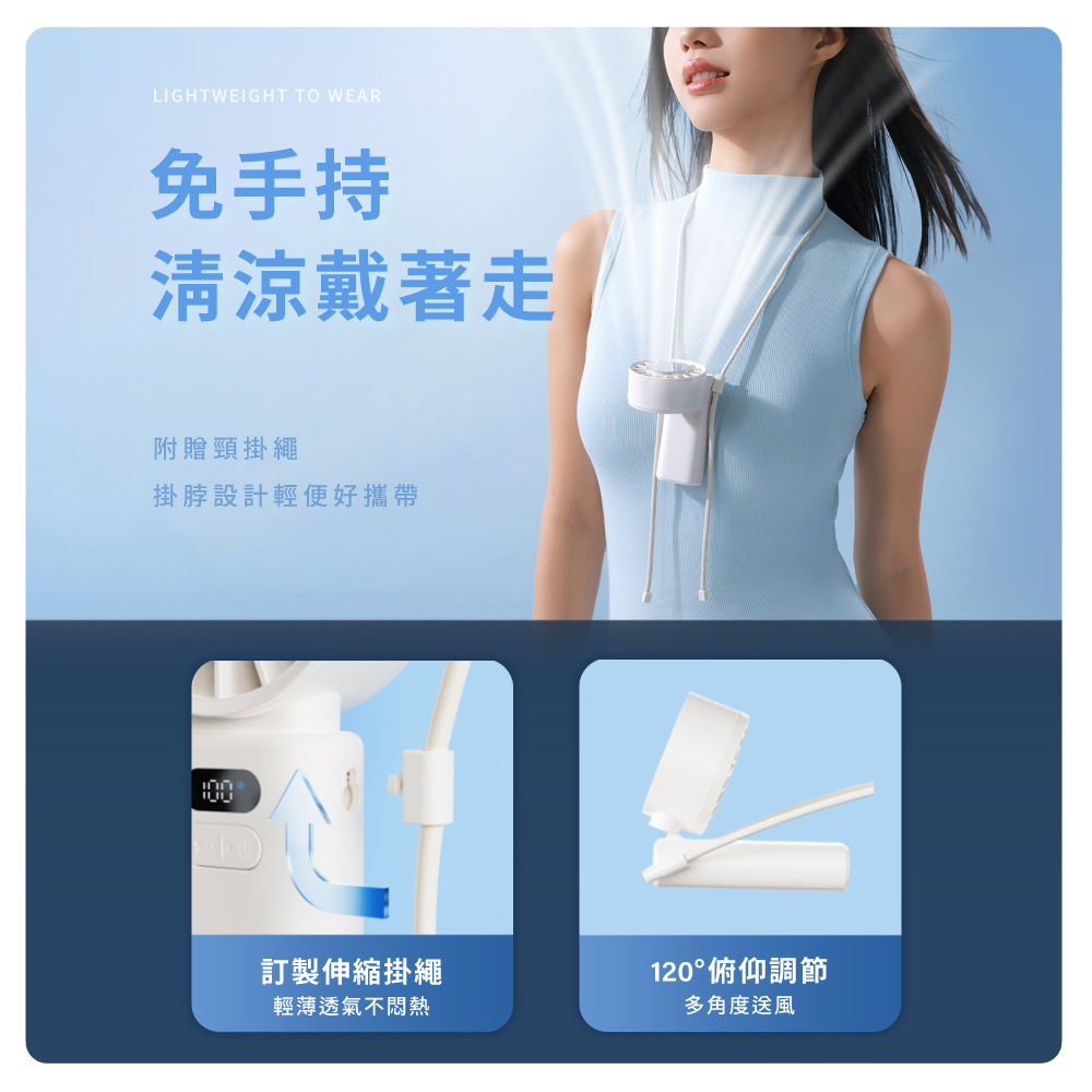 ✔ 100段風速調節 ✔可折疊設計 ✔冰敷降溫 ✔附贈掛繩