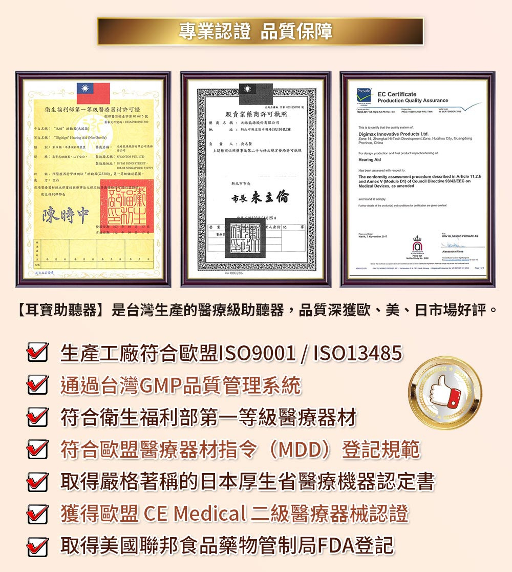 醫療器材許可證所載品名:”耳寶”助聽器(未滅菌)